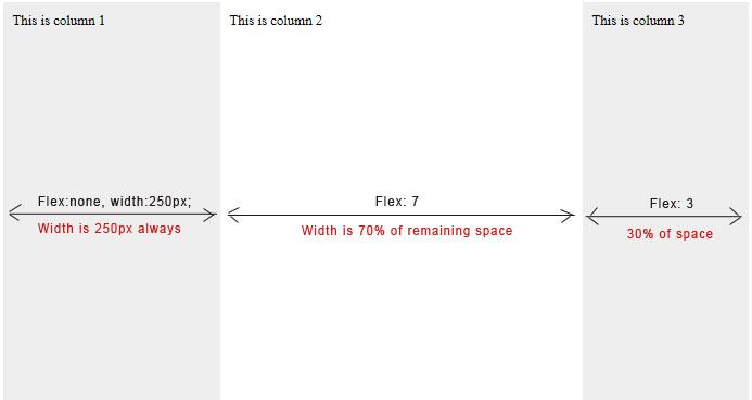 - The 2nd column is 70% of the left over space inside the flex container
